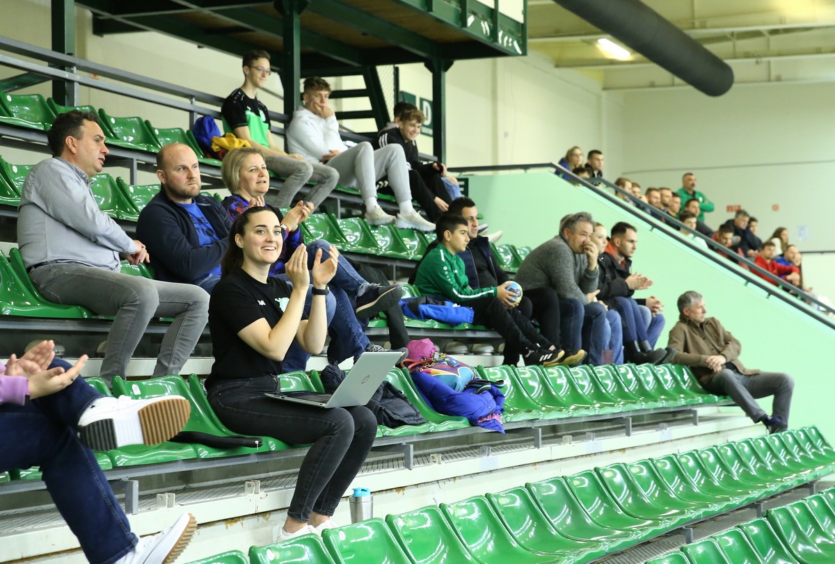 A mérkőzést a Paár, Ujvári, Sokoray, Ásványi, Mátés, Szabó sorral kezdte csapatunk a kapuban Takáccsal. Első találatunkat Mátés szerezte, majd Sokoray labdaszerzését követően már 2-0-ás állást mutatott az eredményjelző. Ezután emberelőnybe kerültünk, azonban ez alatt a két perc alatt nem tudtunk gólt szerezni. Sokoray újabb találatát az ellenfél első hétméteresből szerzett gólja követte (7. perc 3-1). Mátés és Szabó is az ellenfél kapujába talált a tizedik perchez érkezve, így már 5-2-es vezetést alakítottunk ki. 6-3-as állásnál ellenfelünk két hibánkat is kihasználva gyorsan vissza zárkózott  két gólra (6-4), azonban Mátés, Gaál és Ásványi gyors egymást követő gólokat szereztek (17. perc 9-5). A következő percekben mindkét oldalon potyogtak a gólok, 4-3–ra nyerte csapatunk ezt az öt percet (22. perc 13-9). Időt kért Kovácsovics László a 23. percben, ami eredményes volt, hiszen Mátés és Ujvári is ellenfelünk kapujába találtak (26. perc 15-10). Németh kapott játéklehetőséget a félidő második felében, ám szinte azonnal kettő perces kiállítást kapott a 28. percben, így emberhátrányba kerültünk a mérkőzés során először. Hátrányból szerzett gólt Sokoray, majd egy kivédekezett ellentámadást követően Ujvári talált ellenfelünk kapujába.  A félidei eredmény: 17-11